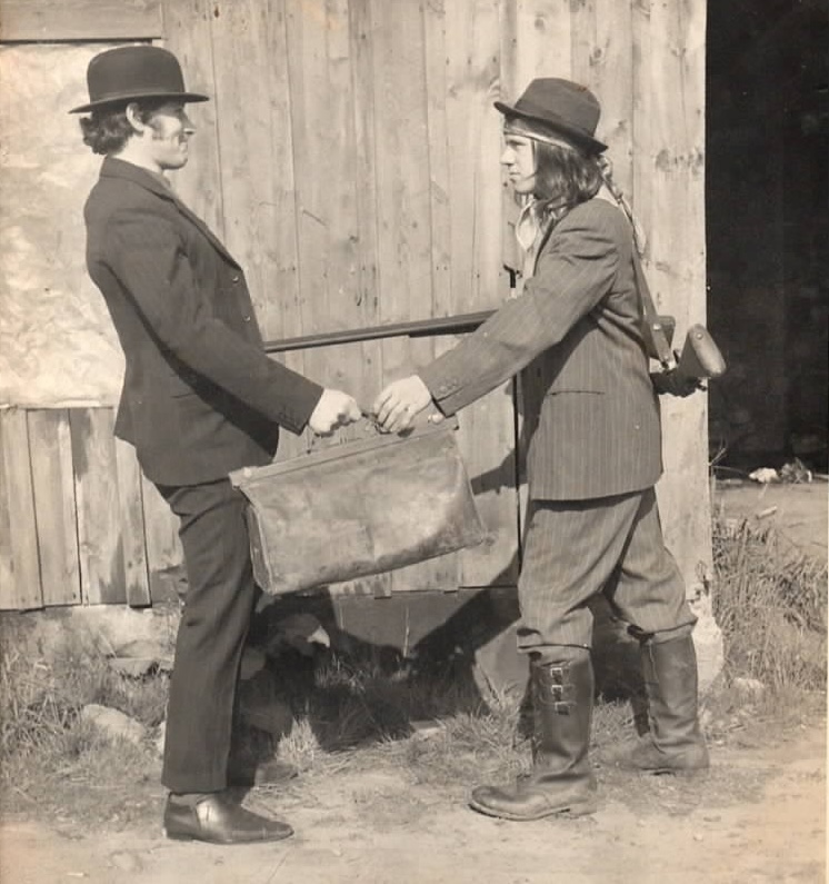 Pictured: fooling around on the farm circa 1970, Dougie at right.